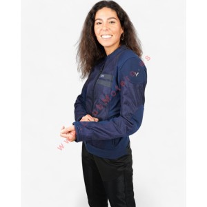 Chaqueta de moto para mujer, confeccionada en malla y punto elástico resistente a la abrasión, diseñada para ofrecer una combinación perfecta de comodidad, flexibilidad y seguridad en cada trayecto. Su diseño incluye dos bolsillos exteriores y prácticos enganches en el pecho, asegurando una gran funcionalidad. Ajustable en muñeca para un ajuste personalizado, esta chaqueta es ligera, totalmente ventilada e ideal para climas cálidos, proporcionando una experiencia fresca y confortable. Los detalles reflectantes en la parte frontal y trasera mejoran la visibilidad en condiciones de baja luz, añadiendo un nivel extra de seguridad. Además, cuenta con bolsillos interiores diseñados para protecciones (protección de espalda no incluida), ofreciendo opciones para una mayor seguridad durante la conducción. Comodidad, estilo y protección para motoristas modernas.