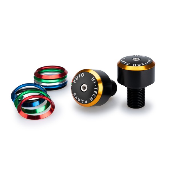 Están compuestos por tres piezas, un cuerpo central, un aro disponible en varios colores para lograr la mejor combinación con la moto, y una tapa final con la inscripción Puig Hi-Tech Parts. Su instalación es muy sencilla ya que tan solo hay que sustituirlos por los contrapesos de manillar originales.