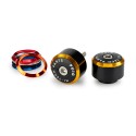 Están compuestos por tres piezas, un cuerpo central, un aro disponible en varios colores para lograr la mejor combinación con la moto, y una tapa final con la inscripción Puig Hi-Tech Parts. Su instalación es muy sencilla ya que tan solo hay que sustituirlos por los contrapesos de manillar originales.