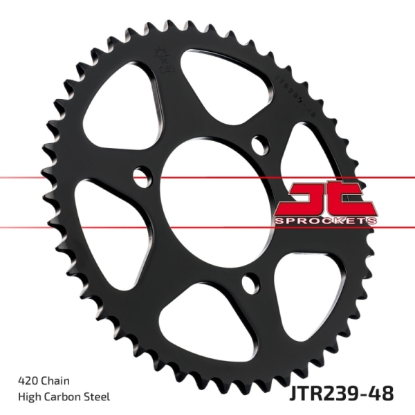 Los piñones y coronas de acero JT se fabrican utilizando acero de alto carbono C49 de la mejor calidad para las coronas y aleación de acero cromado SCM420 para los piñones. La gama de piñones y coronas JT cuenta con más de 2500 modelos para todas las motocicletas y vehículos todo terreno.