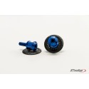 Fabricado a partir de una masa de aluminio fresada y anodizada (peso reducido de 32 gr), garantizará la protección del basculante de posibles rasguños gracias a que viene acompañado de una arandela de nylon de color negro con la serigrafía Puig Hi-Tech Parts. Para facilitar su montaje, la guía de encaje del diábolo y su rosca están mecanizados en un mismo bloque. Para un diámetro de 6mm, es la referencia 9258.