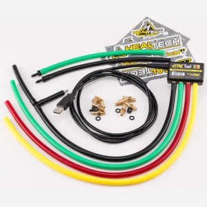 Manómetro / vacuómetro digital de alta precisión para la sincronización profesional de motores de gasolina.El Healtech eSync tiene cuatro canales de medición y no solo proporciona mediciones precisas, sino que también puede mostrar la forma de onda de pulso/vacío en cada cilindro para solucionar problemas complicados.¿Por qué utilizar el eSync Healtech?Todos los motores de gasolina cilindros múltiples requieren sincronización de las toberas de admisión de aire para garantizar que cada cilindro reciba la misma mezcla de aire/combustible. Tradicionalmente, esto requiere el uso de vacuómetros analógicos (inexactos, pesados y frágiles) o un manómetro de mercurio (grande, incómodo y muy frágil). Las herramientas convencionales no pueden mostrar las formas de onda del pulso, solo los valores promediados de la presión.El eSync resuelve estos problemas con alta precisión, tamaño compacto, diseño robusto y una interfaz de software avanzada pero fácil de usar.Cómo funcionaEl sistema eSync Healtech consta de un módulo de medición con cuatro canales de medición. Cada canal se mide mediante un sensor de vacío de alta sensibilidad, ultra rápido, calibrado de fábrica.El módulo se conecta a un ordenador a través de un cable USB y es gestionado por un programa de Windows (descargue desde aquí y pruébelo) que muestra los valores absolutos de vacío y las formas de onda de pulso para cada cilindro en tiempo real.El software graba cada sesión de prueba y puede generar un informe de servicio para uso de talleres. Cada archivo de sesión también se puede recuperar y reproducir para mostrar información al cliente.CaracterísticasSensores de vacío de alta precisiónSoftware multilingüe con actualizaciones gratuitas para la vida del productoMódulo compacto (59x35x17mm / 100g)Extremadamente robusto: sellado con epoxi, sin partes móviles y resistente al agua hasta IP68Resistente al aceiteSe suministra en una pequeña funda protectoraGarantía de dos añosComponentes del KitMódulo eSync con cable USB 2.0 1,5m x 1Mangueras de silicona (negro, verde, rojo, amarillo) 45cm x 4Mangueras de extensión (negro, verde) 23cm x 2Manguera “T” con tapón metálico x 1Adaptadores M5 con junta x 4Adaptadores M6 con junta x 4Pegatinas Healtech x 2Estuche
