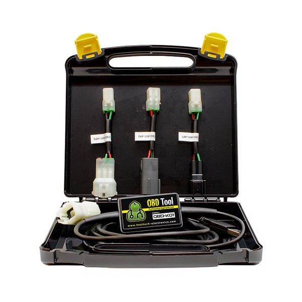 | El OBD-K01 ("On-board Diagnostics") para Kawasaki es una herramienta completa pero económica para diagnosticar fallos en las motos Kawasaki de inyección electrónica. No es compatible con la ZX-10R 2011 en adelante que usa un protocolo de datos distinto. |