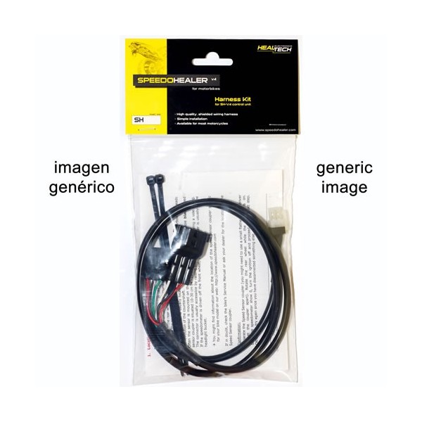 Cableado SpeedoHealerSiempre se requiere un cableado SpeedoHealer para permitir que la señal de velocidad del vehículo pase a través del módulo SpeedoHealer para su corrección.Para la mayoría de las motos, hay disponible un cableado "Plug n' Go" que tiene los mismos conectores de estilo original que el vehículo, por lo que se puede conectar un módulo SpeedoHealer al sensor de velocidad sin cortar ni empalmar ningún cable original ni requerir conexiones de alimentación adicionales. En casi todos los casos, el módulo SpeedoHealer puede utilizar la alimentación y masa proporcionada por la ECU al sensor de velocidad.Sin embargo, si el vehículo tiene un estilo de conector poco común o si el cable que lleva la señal de velocidad forma parte del mazo de cables principal de la ECU (como en las motos con ABS), sería necesario cortar el cable correcto y usar un cableado universal para puentear la señal a través del módulo SpeedoHealer. Los cableados universales incluyen roba-cables con gel 3M de alta calidad.