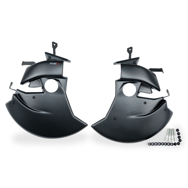 Lo que puede provocar un sobrecalentamiento que reduce las prestaciones y sensaciones en la frenada. Realizado y fabricado en Barcelona con las últimas tecnologías en el moldeo de plásticos, está compuesto por dos tapas de plástico ABS de alta gama, una para cada conjunto de disco y pinza, creando un canal que capta el aire y lo compacta y acelera para dirigirlo de manera directa sobre las pastillas y el disco de freno, consiguiendo rebajar la temperatura de los frenos en diez grados de media como se ha comprobado en pruebas en circuito, lo que permite que no se sobrecalienten y trabajen de manera óptima. Su estudiado diseño, además de aportar una estética más deportiva y personalizada, elimina turbulencias en la rueda delantera al crear una tapa lenticular parcial que favorece la aerodinámica de la moto, sobre todo a altas velocidades.