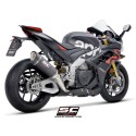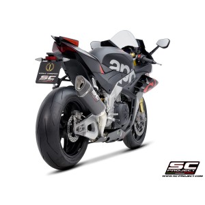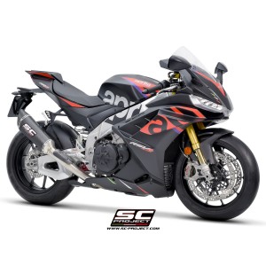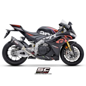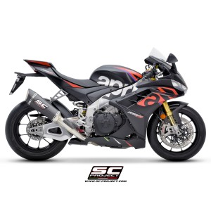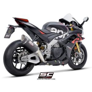 Desarrollado a lo largo de muchos años de colaboración entre los departamentos de Aprilia Racing y SC-Project Reparto Corse, el silenciador SC1-R es la máxima expresión de potencia, calidad y soluciones de alta tecnología para los motores hiperdeportivos de 1100cc fabricados en Noale. Desarrollado por SC-Project para las Aprilia (en configuración SBK y STK) este silenciador tiene una longitud de 300 mm, para un carácter agresivo y deportivo, y permite la eliminación de la válvula de escape original gracias al accesorio de Titanio completo suministrado.