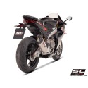 El sistema de escape completo dedicado a la Aprilia RS 660, está construido con soluciones técnicas de primera clase, como soldaduras TIG realizadas en ambiente controlado y casquillos mecanizados mediante CNC, lo que hace que el montaje sea extremadamente sencillo. El cuerpo del silenciador está disponible en fibra de carbono o titanio y está enriquecido con una preciosa placa de aluminio con el logotipo SC-Project, la misma que se utiliza en los escapes de nuestro Departamento de Carreras.