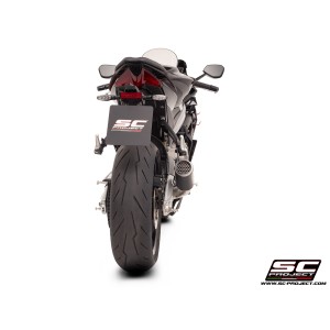 El cuerpo del silenciador de carbono de alta calidad está enriquecido con una preciosa placa de aluminio con el logotipo SC-Project, la misma que se utiliza en los escapes de nuestro Departamento de Carreras.