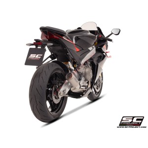 A través de la salida redonda y de diámetro generoso del silenciador CR-T, la voz del bicilíndrico Aprilia será sencillamente inolvidable, con 115 dB a 5250 rpm de auténtico sonido de carreras.