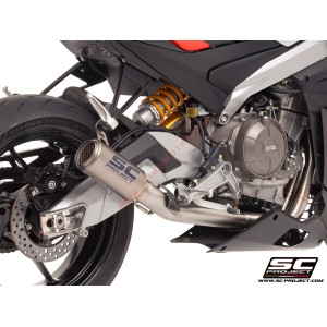 SC-Project ha puesto en práctica toda la experiencia adquirida durante su larga colaboración con Aprilia Racing en el desarrollo de este escape completo equipado con el icónico silenciador CR-T de fibra de carbono, dedicado a la Aprilia RS 660 M.Y. 2025.