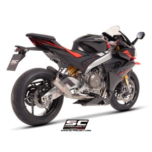 El grupo completo 4-2-1 de titanio para la nueva Aprilia RSV4 proviene directamente de la experiencia adquirida por el Departamento de carreras SC-Project junto con el equipo Aprilia Racing Factory.