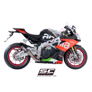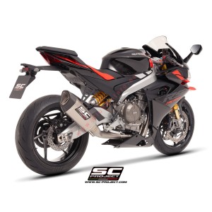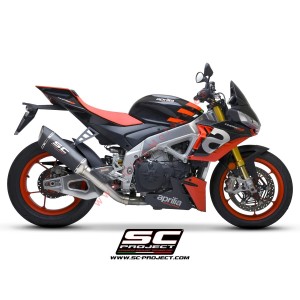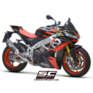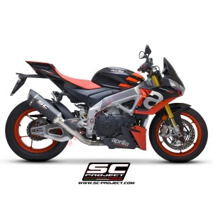 Desarrollado a lo largo de muchos años de colaboración entre los departamentos de Aprilia Racing y SC-Project Reparto Corse, el silenciador SC1-R es la máxima expresión de potencia, calidad y soluciones de alta tecnología para los motores hiperdeportivos de 1100cc fabricados en Noale. Desarrollado por SC-Project para las Aprilia (en configuración SBK y STK) este silenciador tiene una longitud de 300 mm, para un carácter agresivo y deportivo, y permite la eliminación de la válvula de escape original gracias al accesorio de Titanio completo suministrado.