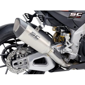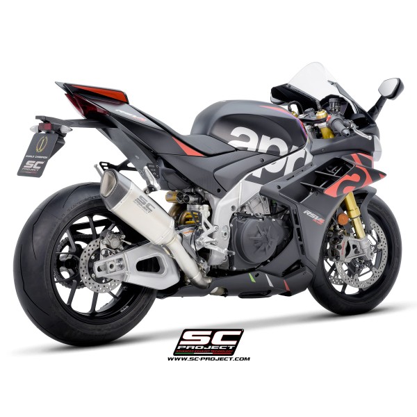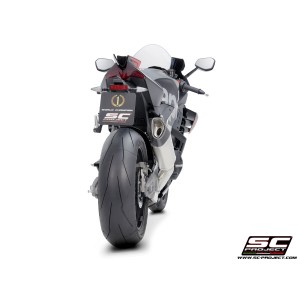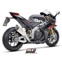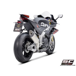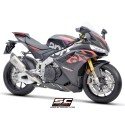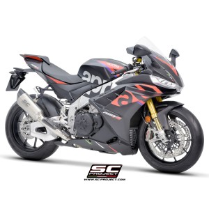Desarrollado a lo largo de muchos años de colaboración entre los departamentos de Aprilia Racing y SC-Project Reparto Corse, el silenciador SC1-R es la máxima expresión de potencia, calidad y soluciones de alta tecnología para los motores hiperdeportivos de 1100cc fabricados en Noale. Gracias a la presencia de una exclusiva válvula de escape de Titanio - desarrollada por SC-Project para los escapes de MotoGP y WSBK - este silenciador se presenta en una configuración corta, de solo 250 mm de longitud, para obtener una línea estética más extrema y deportiva.