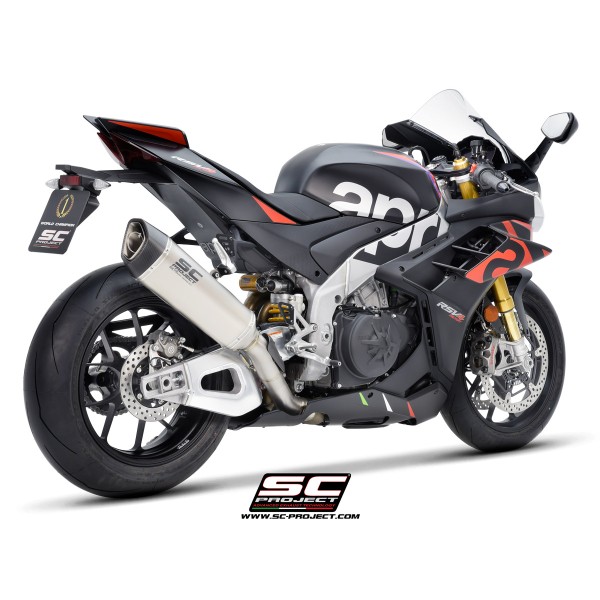 Desarrollado a lo largo de muchos años de colaboración entre los departamentos de Aprilia Racing y SC-Project Reparto Corse, el silenciador SC1-R es la máxima expresión de potencia, calidad y soluciones de alta tecnología para los motores hiperdeportivos de 110cc fabricados en Noale. Desarrollado por SC-Project para las Aprilia (en configuración SBK y STK) este silenciador tiene una longitud de 350 mm, para un carácter agresivo y deportivo, y permite la eliminación de la válvula de escape original gracias al accesorio de Titanio completo suministrado.