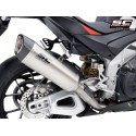 Las soldaduras realizadas con tecnología T.I.G. en un entorno protegido, el material fonoabsorbente resistente a temperaturas muy elevadas y los casquillos de inserción mecanizados CNC dotan de mayor atractivo al producto. La instalación es “plug-and-play”: en este caso, se recomienda la reprogramación de la ECU para optimizar el rendimiento del motor. El kit incluye un protector de escape específico de Fibra de Carbono y el soporte para desmontar el reposapiés del pasajero, así como el accesorio de competición completo de Titanio.