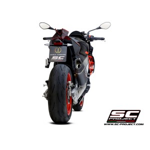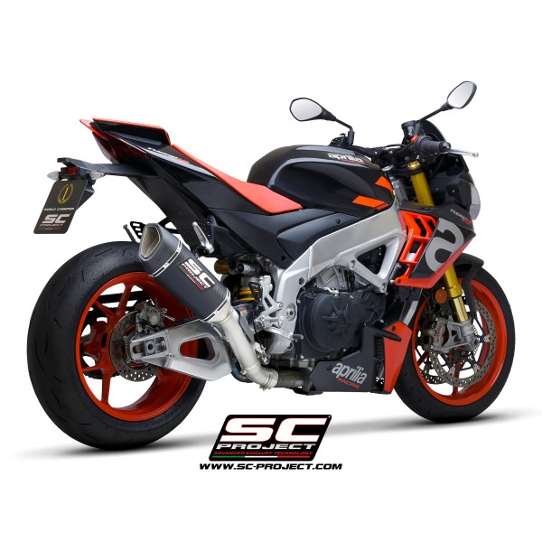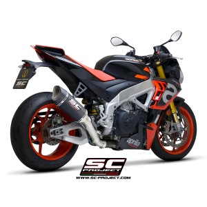 Desarrollado a lo largo de muchos años de colaboración entre los departamentos de Aprilia Racing y SC-Project Reparto Corse, el silenciador SC1-R es la máxima expresión de potencia, calidad y soluciones de alta tecnología para los motores hiperdeportivos de 1100cc fabricados en Noale. Gracias a la presencia de una exclusiva válvula de escape de Titanio - desarrollada por SC-Project para los escapes de MotoGP y WSBK - este silenciador se presenta en una configuración corta, de solo 250 mm de longitud, para obtener una línea estética más extrema y deportiva.