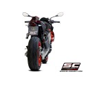 Para el uso en competición, el dB-killer es desmontable: la boca de salida obtenida mediante el proceso de hidroformado y el embellecedor de Fibra de Carbono con su forma romboidal y asimétrica hacen del slip-on SC1-R la mejor elección para esta moto. Para esta aplicación, la cubierta exterior está disponible en dos opciones: Titanio o Fibra de Carbono.