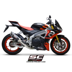 Desarrollado a lo largo de muchos años de colaboración entre los departamentos de Aprilia Racing y SC-Project Reparto Corse, el silenciador SC1-R es la máxima expresión de potencia, calidad y soluciones de alta tecnología para los motores hiperdeportivos de 1100cc fabricados en Noale. Gracias a la presencia de una exclusiva válvula de escape de Titanio - desarrollada por SC-Project para los escapes de MotoGP y WSBK - este silenciador se presenta en una configuración corta, de solo 250 mm de longitud, para obtener una línea estética más extrema y deportiva.