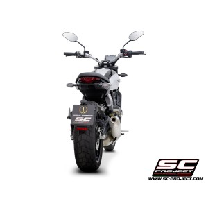 El diseño de este sistema de escape está claramente inspirado en las aventuras todoterreno. Los materiales utilizados, el proceso de producción, el máximo cuidado de los detalles, además del volumen compacto de este silenciador, han sido estudiados y probados para ser una de las mejores soluciones de la gama de SC-Project para Ducati Scrambler 800.