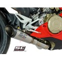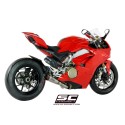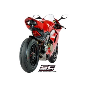 El silenciador S1 representa para SC-Project la combinación perfecta de ligereza y rendimiento sin concesiones. Su forma cónica con líneas tensas y esenciales hacen que el silenciador S1 sea fascinante, dando impulso a Tu Ducati Panigale V4. Nacido de la experiencia del departamento de carreras en los circuitos del Campeonato WSBK, el silenciador tiene un cuerpo de Titanio con una tapa de Carbono con un material particular fonoabsorbente que resiste las altas temperaturas. Para hacerlo único e inconfundible, nuestros Técnicos utilizaron los mejores procesos de producción: escuadras y racores soldados con tecnología T.I.G., casquillos de acoplamiento de titanio mecanizados a partir de bloque con maquinaria CNC y Logo grabado con láser. Desde el sonido agudo y potente, el silenciador S1 hará que el Sonido de Su Motocicleta sea único.