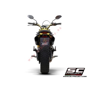 Con el silenciador MTR la empresa SC-Project ha logrado conjugar Rendimiento, Estilo y Globetrotters. El nuevo silenciador MTR (Multiple Road) se adapta perfectamente a tu Ducati Scrambler 1100. Gracias sobre todo al nuevo tapa en Anticorodal completamente obtenido del macizo mediante mecanizado a máquinas CNC, el estilo del silenciador se vuelve único e inconfundible. El mecanizado externo de tapa ha sido particularmente cuidado del departamento R&D de SC-Project, para obtener superficies y acabados que exaltaran el material mismo. Cuidado especial también para el mecanizado interno hecho para aligerar al máximo el tapa mismo. El color de tapa se obtiene por oxidación anódica de alta resistencia al calor, para preservarlo en el tiempo. Para el color se ha elegido un negro brillante llamado "Black Pearl". El silenciador está aprobado EURO4. El kit incluye el cuerpo externo en la versión de Carbono y tubos de enlace.