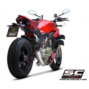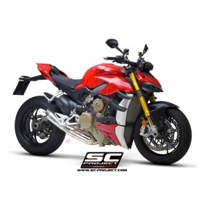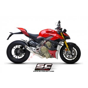 El silenciador S1 representa para SC-Project la combinación perfecta de ligereza y rendimiento sin concesiones. Su forma cónica con líneas tensas y esenciales hacen que el silenciador S1 sea fascinante, dando impulso a Tu Ducati Streetfighter V4. Nacido de la experiencia del departamento de carreras en los circuitos del Campeonato WSBK, el silenciador tiene un cuerpo de Titanio con una tapa de Carbono con un material particular fonoabsorbente que resiste las altas temperaturas. Para hacerlo único e inconfundible, nuestros Técnicos utilizaron los mejores procesos de producción: escuadras y racores soldados con tecnología T.I.G., casquillos de acoplamiento de titanio mecanizados a partir de bloque con maquinaria CNC y Logo grabado con láser. Desde el sonido agudo y potente, el silenciador S1 hará que el Sonido de Su Motocicleta sea único. Para un rendimiento perfecto, respuesta del acelerador y durabilidad, se recomienda la remaping de ECU. Las mejores prestaciones con el mejor diseño para la Ducati Streetfighter V4.