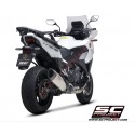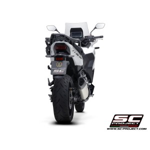 Este sistema de escape representa el tope de gama de los productos SC-Project y ha sido diseñado y fabricado para soportar el uso durante largos kilometrajes. Cada una de las soluciones de este silenciador ha sido adoptada para ofrecer lo máximo en términos de calidad y rendimiento: los mejores materiales combinados con las mejores tecnologías de construcción como la soldadura TIG realizada en ambiente protegido, el material fonoabsorbente y resistente a temperaturas muy elevadas, los casquillos internos mecanizados a partir de bloque macizo mediante mecanizado CNC, el fondo obtenido mediante hidroformado y, por último, la exclusiva y agresiva salida de fibra de carbono. El silenciador SC1-R GT es una verdadera obra de arte, tecnología y diseño 100 % Made in Italy.