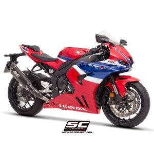 El estilo racing de la Honda CBR1000RR-R encuentra una combinación perfecta con el sistema de escape SC1-R, el tope de gama de los productos SC-Project en términos de rendimiento y soluciones técnicas.