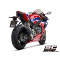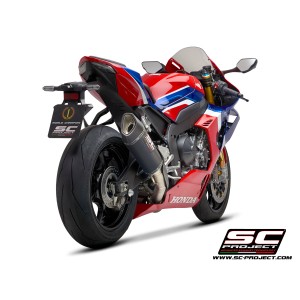 El estilo racing de la Honda CBR1000RR-R encuentra una combinación perfecta con el sistema de escape SC1-R, el tope de gama de los productos SC-Project en términos de rendimiento y soluciones técnicas.