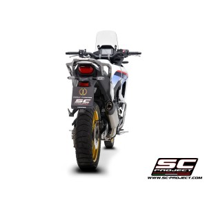 Este producto ha sido probado y desarrollado con una configuración específica para Honda Transalp XL750: el kit incluye un protector térmico específico de fibra de carbono, el certificado de homologación específico para uso legal en carretera y se enriquece con una placa de acero inoxidable incorporada en la abrazadera del tubo, con el logotipo de SC-Project grabado con tecnología láser. El producto es completamente plug and play, puede instalarse sin modificaciones y es compatible con las maletas laterales originales. La versión en carbono del silenciador X-Plorer II se realiza con una prestigiosa placa de aluminio con el logotipo de SC-Project, la misma utilizada en los sistemas de escape suministrados a los equipos oficiales por el Departamento de Carreras de SC-Project: la versión en titanio, en cambio, se realiza con un elegante marcado láser del logotipo de SC-Project.
