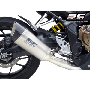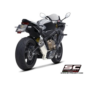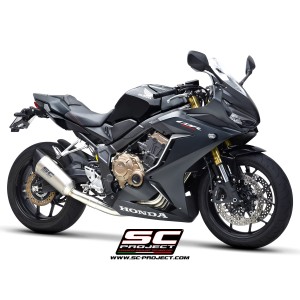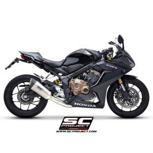 El grupo SC-Project completo es el resultado directo del trabajo de investigación, desarrollo y diseño realizado por el departamento de R&D junto con los principales equipos de los campeonatos de MotoGP y SBK. SC-Project, con el objetivo de mejorar el rendimiento y la estética de su Honda CBR650R ha creado una unidad completa diseñada para albergar la sonda lambda original, que presenta soluciones técnicas de primer nivel: el uso de casquillos mecanizados mecanizados a partir de sólidos y Mecanizados por CNC, confieren al sistema de escape unos acoplamientos perfectos que facilitan el montaje y mejoran el rendimiento del sistema. El trabajo de aligeramiento del sistema gracias al uso de acero inoxidable AISI 304 de reducido espesor garantiza una mejor maniobrabilidad del vehículo. La creación de racores con dimensiones variables garantiza un fuerte aumento del rendimiento tanto en términos de par como de potencia máxima en toda la curva.