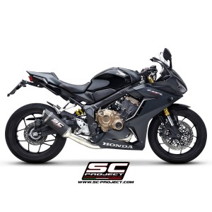 El grupo SC-Project completo es el resultado directo del trabajo de investigación, desarrollo y diseño realizado por el departamento de R&D junto con los principales equipos de los campeonatos de MotoGP y SBK. SC-Project, con el objetivo de mejorar el rendimiento y la estética de su Honda CBR650R ha creado una unidad completa diseñada para albergar la sonda lambda original, que presenta soluciones técnicas de primer nivel: el uso de casquillos mecanizados mecanizados a partir de sólidos y Mecanizados por CNC, confieren al sistema de escape unos acoplamientos perfectos que facilitan el montaje y mejoran el rendimiento del sistema. El trabajo de aligeramiento del sistema gracias al uso de acero inoxidable AISI 304 de reducido espesor garantiza una mejor maniobrabilidad del vehículo. La creación de racores con dimensiones variables garantiza un fuerte aumento del rendimiento tanto en términos de par como de potencia máxima en toda la curva.