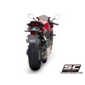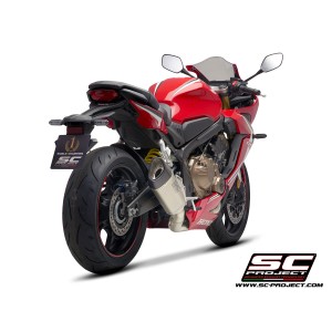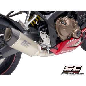 Il silenziatore SC1-R è stato creato e sviluppato dall'esperienza del reparto corse SC-Project nelle Competizioni Mondiali più importanti. Un look dalle linee tese e decise arricchirà la Vostra Honda CBR650R rendendola unica ed esclusiva. La bocca d’uscita ottenuta tramite idroformatura e il fondello in fibra di carbonio dalla forma romboidale asimmetrica rendono inimitabile il silenziatore SC1-R. Il leggerissimo corpo esterno è disponibile sia in versione Titanio che in versione Carbonio. Le saldature a T.I.G., il materiale fonoassorbente resistente alle altissime temperature e le boccole d’innesto ricavate dal pieno tramite lavorazione CNC impreziosiscono il silenziatore SC1-R. Nella versione con corpo in Titanio il reparto R&D di SC-Project ha voluto rendere l’SC1-R più elegante imprimendone il Logo tramite laser, senza snaturarne il look, mentre nella versione in Carbonio, sul silenziatore viene applicato un inserto con il logo SC-Project come nelle versioni dei nostri scarichi utilizzati nelle Competizioni.