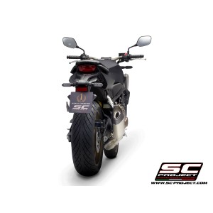El grupo SC-Project completo es el resultado directo del trabajo de investigación, desarrollo y diseño realizado por el departamento de R&D junto con los principales equipos de los campeonatos de MotoGP y SBK. SC-Project, con el objetivo de mejorar el rendimiento y la estética de su Honda CB650R ha creado una unidad completa diseñada para albergar la sonda lambda original, que presenta soluciones técnicas de primer nivel: el uso de casquillos mecanizados mecanizados a partir de sólidos y Mecanizados por CNC, confieren al sistema de escape unos acoplamientos perfectos que facilitan el montaje y mejoran el rendimiento del sistema. El trabajo de aligeramiento del sistema gracias al uso de acero inoxidable AISI 304 de reducido espesor garantiza una mejor maniobrabilidad del vehículo. La creación de racores con dimensiones variables garantiza un fuerte aumento del rendimiento tanto en términos de par como de potencia máxima en toda la curva.