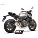 CR-T, es el silenciador pluricampeón del Mundo y que más identifica a la gama SC-Project, se encuentra disponible en las variantes de titanio y carbono y, dependiendo del modelo de motocicleta, con la escenográfica red ignífuga de titanio en la boca de salida.
