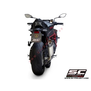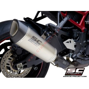 El silenciador SC1-R está creado y desarrollado a partir de la experiencia del departamento de carreras de SC-Project en las competiciones mundiales más importantes. Un look de líneas tensas y decididas enriquecerá Tu Kawasaki Z H2 haciéndola única y exclusiva. La salida obtenida por hidroformado y el fondo de fibra de carbono con forma romboidal asimétrica hacen que el silenciador SC1-R sea inimitable. El cuerpo exterior ligero está disponible en versiones de Titanio y Carbono. Las soldaduras T.I.G., el material fonoabsorbente resistente a muy altas temperaturas y los casquillos de inserción mecanizados en macizo mediante mecanizado CNC embellecen el silenciador SC1-R. En la versión con cuerpo de Titanio, el departamento de R&D de SC-Project quiso hacer más elegante el SC1-R imprimiendo el Logo con láser, sin distorsionar su aspecto, mientras que en la versión de Carbono, un inserto con el logo de SC-Project está remachado en el silenciador como en las versiones de nuestros escapes utilizados en Competiciones. El kit incluye la protección termal de carbono.