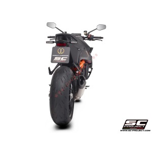 Para la KTM 1390 Super Duke R, el SC1-R permite una sensible reducción de peso de más del -30% (-1,0 kg en comparación con el escape OEM) y obtener una increíble ganancia máxima de 2,0 CV a 7900 rpm y 1,9 Nm de par a 7900 rpm, junto con una mejora estable de la entrega de potencia y par en el régimen bajo y medio.
