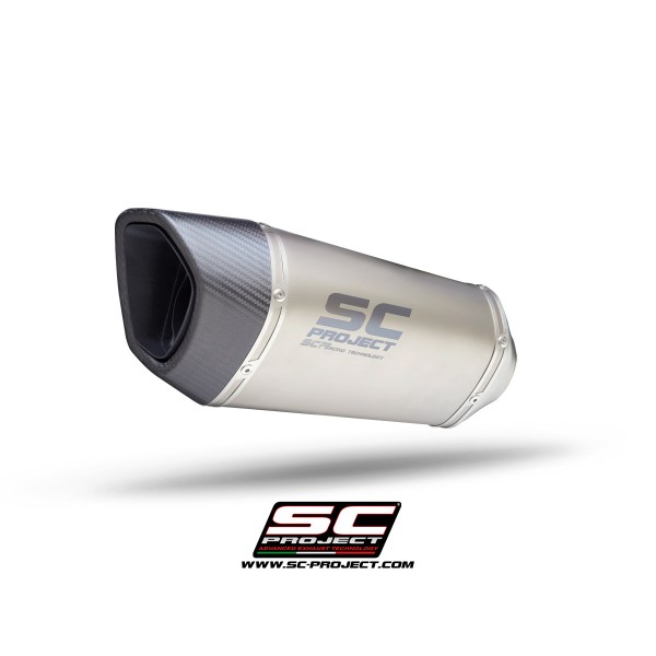 The asymmetric and clean rhomboidal shape, together with the matt carbon fiber end cap, recalls the sporting spirit of the SC1-R confirming it as the ideal muffler for the latest modern bikes.