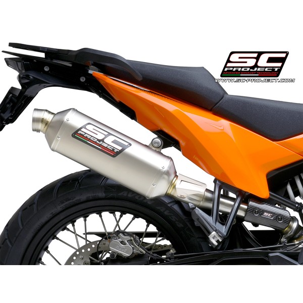 Born on the proving ground of the most extreme competitions, the Rally Raid muffler has been designed and developed to convey SC-Project racing experience into an Euro 5 approved slip-on for the KTM 890 SMT.