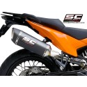 The SC1-R silencer allows the KTM 890 SMT a stable power and torque delivery improvement in the low and mid range and is completed by SC-Project signature: the sound. The voice of the twin cylinder will be emphasised with deeper notes and growly tones in full compliance with Euro 5 regulation.