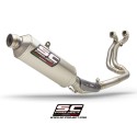SC-Project, with the aim of improving performance and aesthetics of the standard motorbike, has created a full system designed to house the original lambda probe, showcases first-class technical solutions: as the use of CNC machined bushings from solid allow the exhaust system impeccable couplings that make fitting easier and improve system performance; the implementation of a lighter system ensures better bike rideability; the production of pipes of variable dimensions guarantees a marked increase in performance both in terms of torque and maximum power through the entire bend.