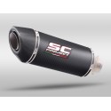 El silenciador Oval es un concentrado de tecnología combinado con la investigación estética que caracteriza a toda la gama SC-Project. Su forma elíptica y compacta se combina con la elección de los mejores materiales disponibles en el mercado y algunas soluciones técnicas líderes: soldadura del accesorio con T.I.G. y bujes de acoplamiento, así como la punta, mecanizados a partir de sólidos por maquinaria CNC, que garantizan acoplamientos impecables. Viene con una protección de carbono. El silenciador está disponible con un cuerpo externo en carbono o titanio.