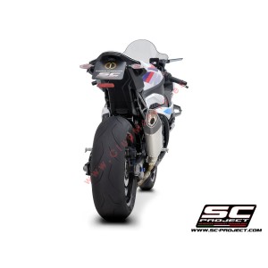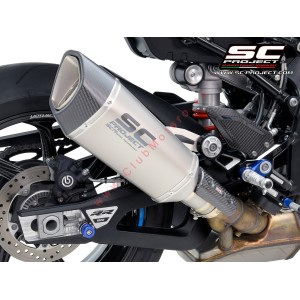El silenciador SC1-R está creado y desarrollado a partir de la experiencia del departamento de carreras de SC-Project en las competiciones mundiales más importantes. Un look de líneas tensas y decididas enriquecerá Tu BMW S 1000 RR haciéndola única y exclusiva. La salida obtenida por hidroformado y el fondo de fibra de carbono con forma romboidal asimétrica hacen que el silenciador SC1-R sea inimitable. El cuerpo exterior ligero está disponible en versiones de Titanio y Carbono. Las soldaduras T.I.G., el material fonoabsorbente resistente a muy altas temperaturas y los casquillos de inserción mecanizados en macizo mediante mecanizado CNC embellecen el silenciador SC1-R. En la versión con cuerpo de Titanio, el departamento de R&D de SC-Project quiso hacer más elegante el SC1-R imprimiendo el Logo con láser, sin distorsionar su aspecto, mientras que en la versión de Carbono, un inserto con el logo de SC-Project está remachado en el silenciador como en las versiones de nuestros escapes utilizados en Competiciones. Todo el sistema se puede mejorar aún más con la adición de un protector de fibra de carbono hecho en autoclave incluido en el kit.