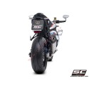 Se ha adoptado cada solución de este silenciador para ofrecer lo mejor en términos de calidad y rendimiento: los mejores materiales combinados con las mejores tecnologías de fabricación como la soldadura TIG realizada en un entorno protegido, el material fonoabsorbente resistente a temperaturas muy altas, los casquillos internos obtenidos de una pieza mediante mecanizado CNC, la tapa obtenida mediante un proceso de hidroformado y finalmente la exclusiva y deportiva salida de fibra de carbono. El silenciador SC1-R es una verdadera obra de arte, tecnología y diseño 100% Made in Italy. Este escape representa lo mejor de la gama de productos SC-Project y ha sido diseñado y fabricado para resistir el uso intenso en pista y en la carretera.