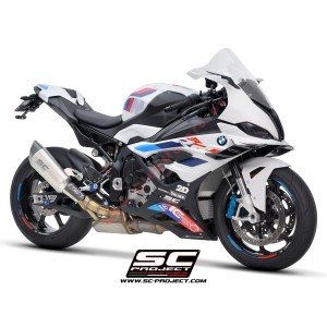 El silenciador SC1-R está creado y desarrollado a partir de la experiencia del departamento de carreras de SC-Project en las competiciones mundiales más importantes. Un look de líneas tensas y decididas enriquecerá Tu BMW S 1000 RR haciéndola única y exclusiva. La salida obtenida por hidroformado y el fondo de fibra de carbono con forma romboidal asimétrica hacen que el silenciador SC1-R sea inimitable. El cuerpo exterior ligero está disponible en versiones de Titanio y Carbono. Las soldaduras T.I.G., el material fonoabsorbente resistente a muy altas temperaturas y los casquillos de inserción mecanizados en macizo mediante mecanizado CNC embellecen el silenciador SC1-R. En la versión con cuerpo de Titanio, el departamento de R&D de SC-Project quiso hacer más elegante el SC1-R imprimiendo el Logo con láser, sin distorsionar su aspecto, mientras que en la versión de Carbono, un inserto con el logo de SC-Project está remachado en el silenciador como en las versiones de nuestros escapes utilizados en Competiciones. Todo el sistema se puede mejorar aún más con la adición de un protector de fibra de carbono hecho en autoclave incluido en el kit.