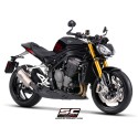 SC Project para TRIUMPH STREET TRIPLE 765 (2024 - 2026) - EURO 5+ - Línea de escape completa 3-1 acero inoxidable, con escape CR-T carbono con malla antipiedras
