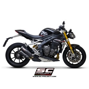 La amplia experiencia de SC-Project como socio técnico de numerosos equipos del Campeonato del Mundo de Moto2 ha guiado el desarrollo del silenciador Twin CR-T, permitiendo realzar las características únicas del legendario tricilíndrico inglés con una combinación perfecta de prestaciones, estilo y ADN racing, cumpliendo plenamente con la normativa Euro 5.