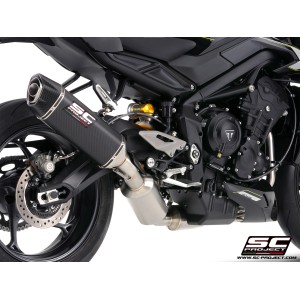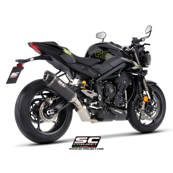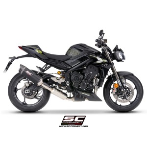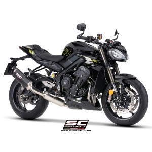 SC Project para TRIUMPH STREET TRIPLE 765 (2024 - 2026) - EURO 5+ - Línea de escape completa 3-1 acero inoxidable, con escape SC1-X carbono
