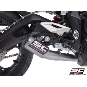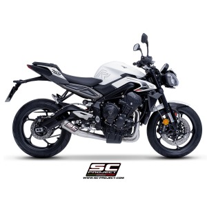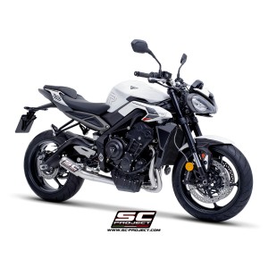 SC Project para TRIUMPH STREET TRIPLE 765 (2024 - 2026) - EURO 5+ - Línea de escape completa 3-1 acero inoxidable, con escape CR-T titanio con malla antipiedras