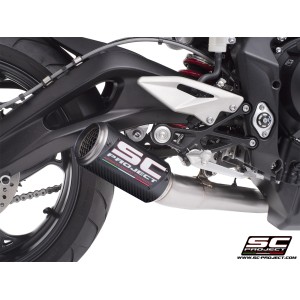 SC Project para TRIUMPH STREET TRIPLE 765 R - RS (2023 - 2024) - EURO 5 - Línea de escape completa 3-1 acero inoxidable, con escape CR-T carbono con malla antipiedras